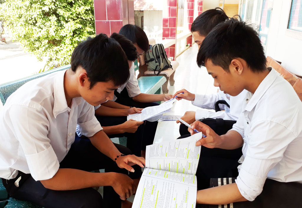Học sinh Trường THCS&THPT Hưng Điền B chia nhóm ôn tập