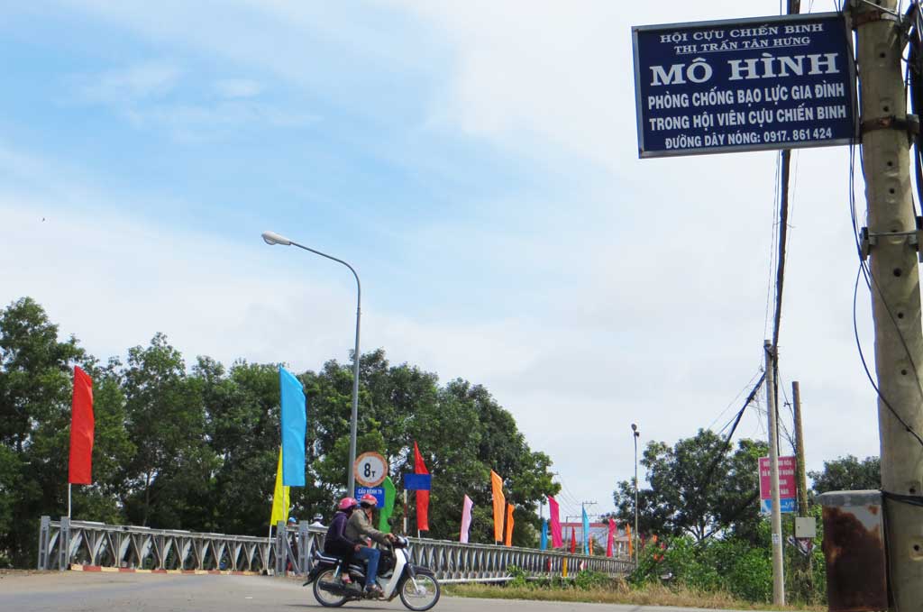 Hội Cựu chiến binh thị trấn Tân Hưng gắn pano tuyên truyền về phòng, chống bạo lực gia đình