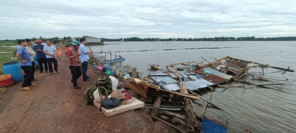 Tại huyện Vĩnh Hưng mưa dông làm sập hoàn toàn 3 căn nhà, tốc mái 1 căn, làm 1 người bị thương