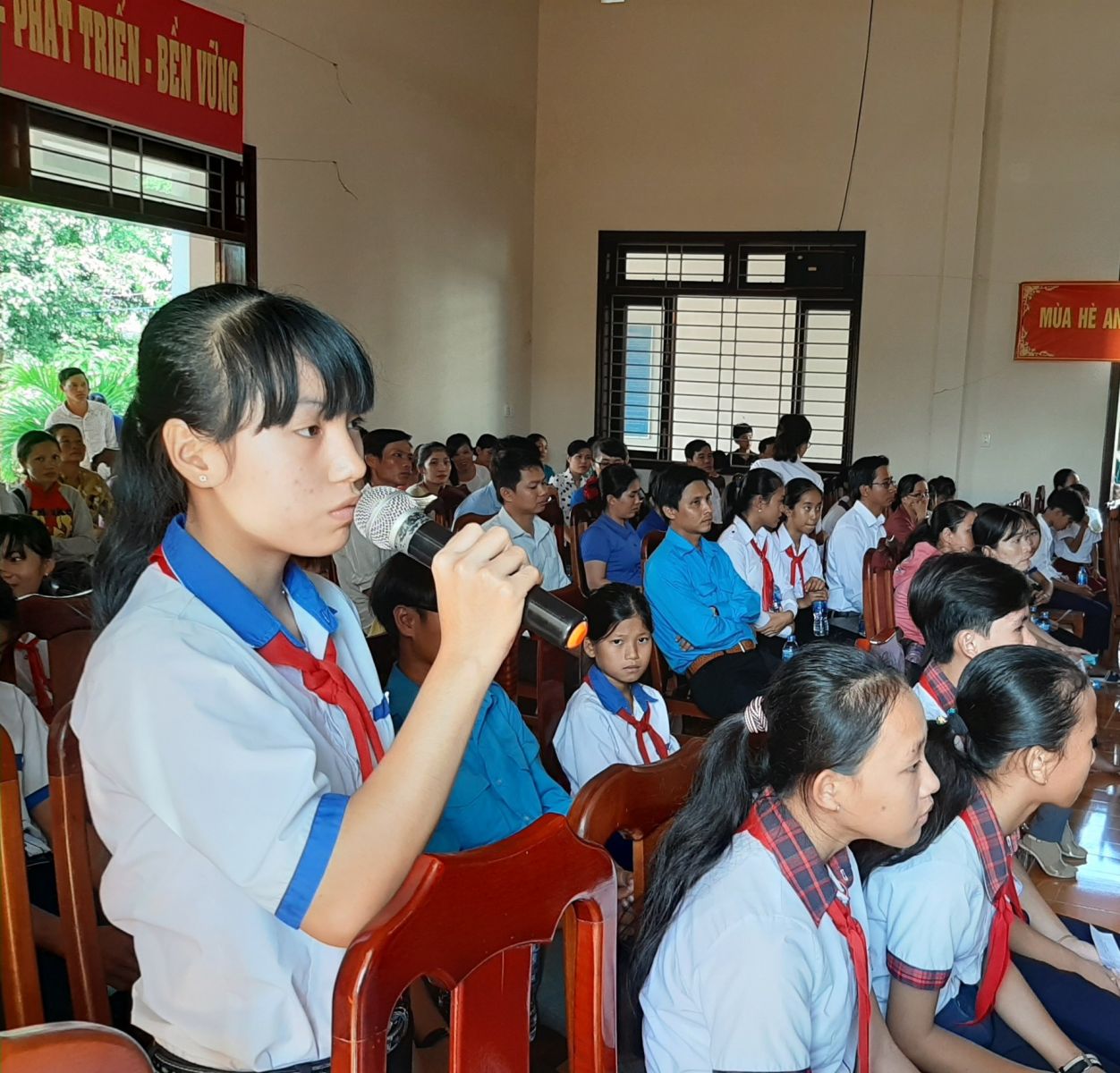 Học sinh phát biểu ý kiến tại Diễn đàn trẻ em