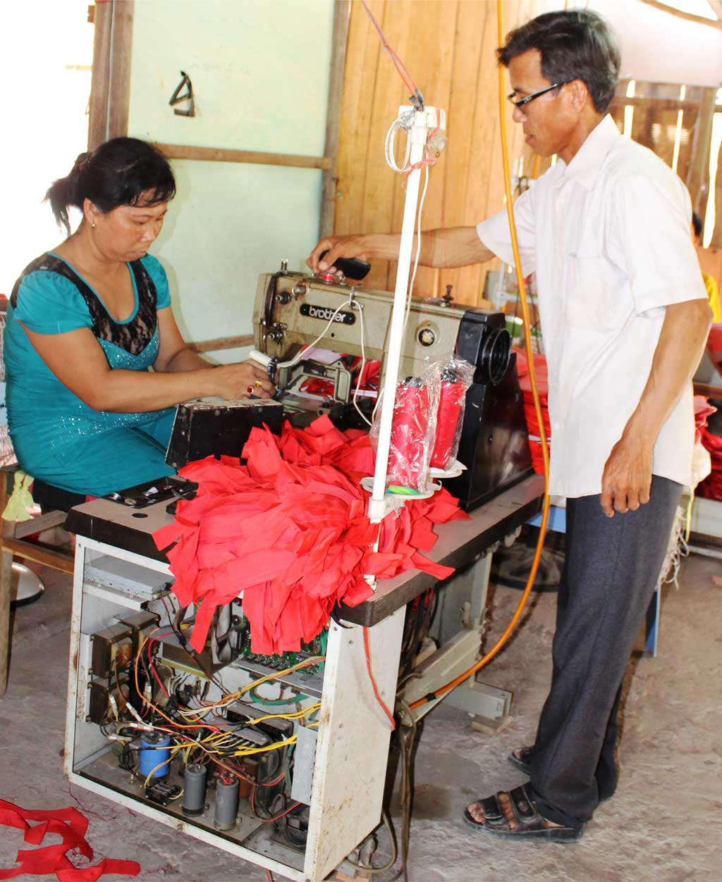 Không chỉ dựa vào sản xuất lúa, ông Bốn liên hệ với các công ty, xí nghiệp nhận may túi xách gia công, nhằm tạo việc làm cho gia đình và lao động ở địa phương. Tại đây, ông góp phần giải quyết việc làm thường xuyên cho 30 lao động nữ, hằng tháng, mỗi lao động thu nhập trên 2 triệu đồng.