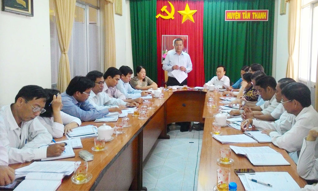 Ngày 11/8/2016, Đoàn công tác Sở Nông nghiệp và Phát triển nông thôn tỉnh Long An do ông Lê Văn Hoàng - Giám đốc Sở làm trưởng đoàn có buổi làm việc với lãnh đạo UBND huyện Tân Thạnh để nắm tình hình sản xuất lúa và một số khó khăn, vướng mắc của địa phương.
