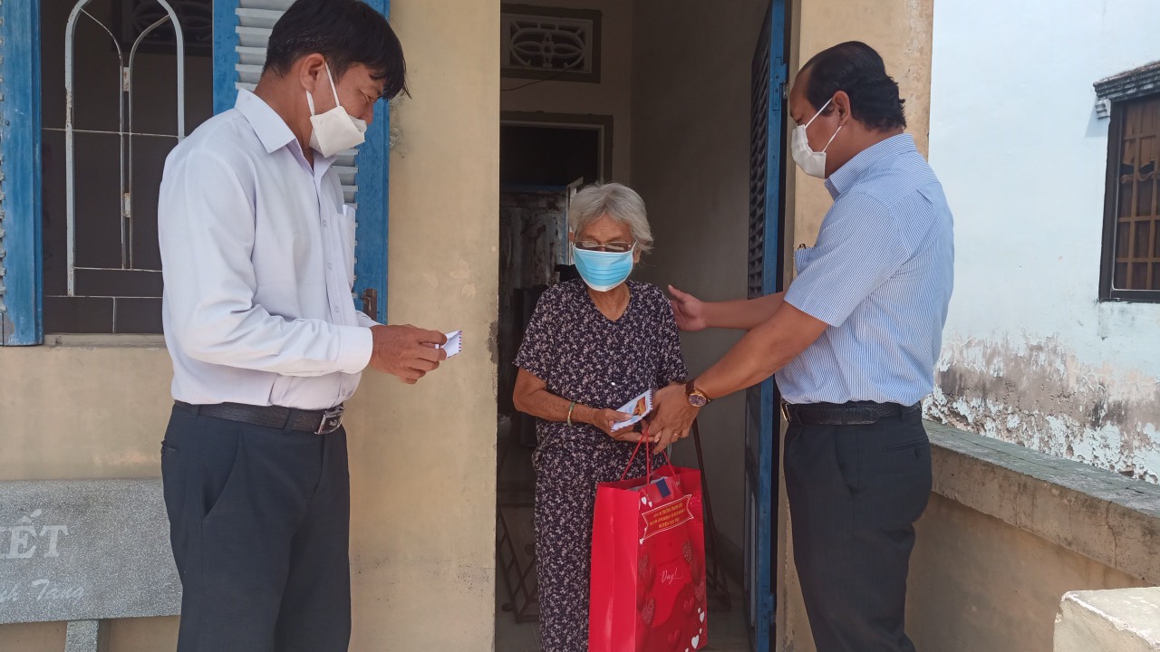 Lãnh đạo huyện Tân Trụ trao quà cho hộ nghèo, gia đình có hoàn cảnh khó khăn