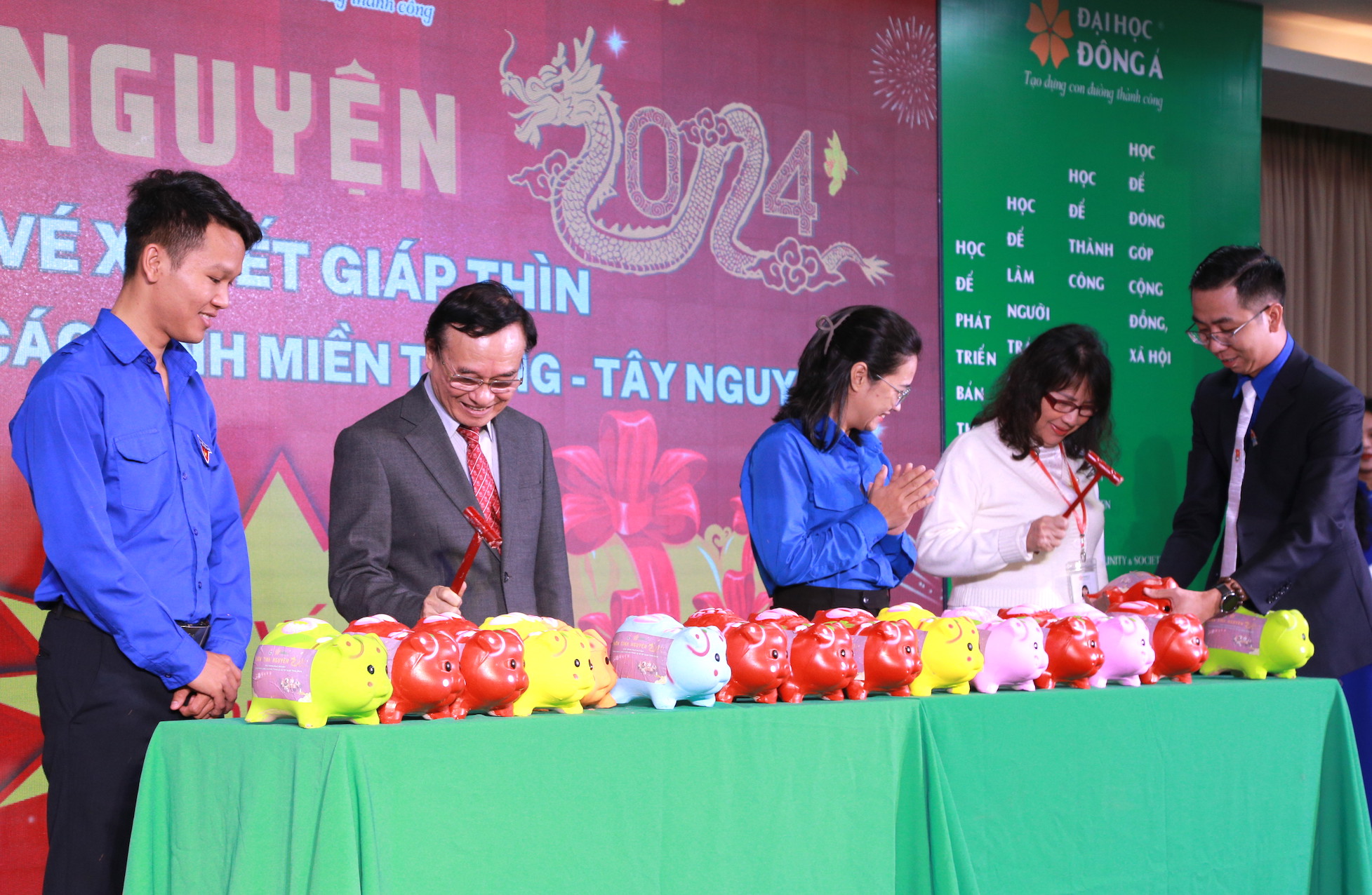 | Đập heo đất gây quỹ vé xe Tết tặng sinh viên khó khăn miền Trung – Tây Nguyên. |