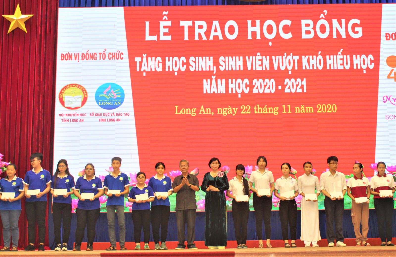 Sáng 22/11, Hội Khuyến học tỉnh Long An phối hợp Sở Giáo dục và Đào tạo tặng 395 suất học bổng cho học sinh - sinh viên nghèo vượt khó hiếu học.
