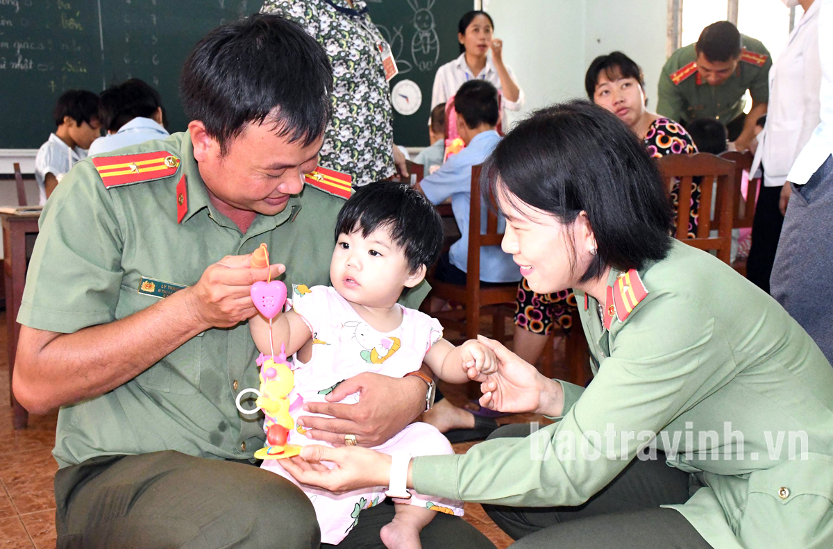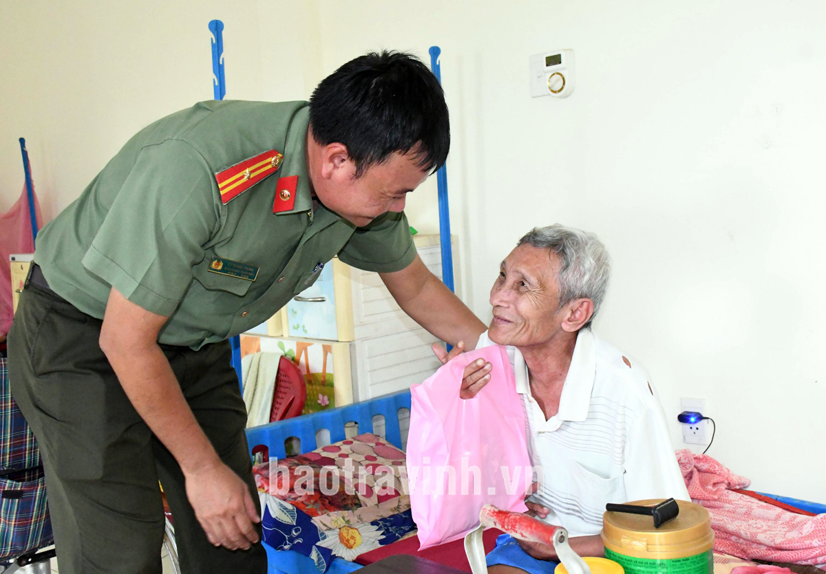 Đoàn công tác đã đến thăm, tặng 445 phần quà gồm bánh trung thu, lồng đèn, trà, sữa... cho học sinh có hoàn cảnh khó khăn tại Trường Tiểu học Đôn Xuân (huyện Duyên Hải) và Trường Mẫu giáo Lạc Sơn (xã Thạnh Hòa Sơn, huyện Cầu Ngang); trẻ mồ côi, khuyết tật, người già neo đơn tại Trung tâm Bảo trợ xã hội tỉnh; trẻ mồ côi tại chùa Long An (xã Tập Ngãi, huyện Tiểu Cần); trẻ mồ côi trong chương trình “Mẹ đỡ đầu” của Ban Phụ nữ Công an tỉnh.