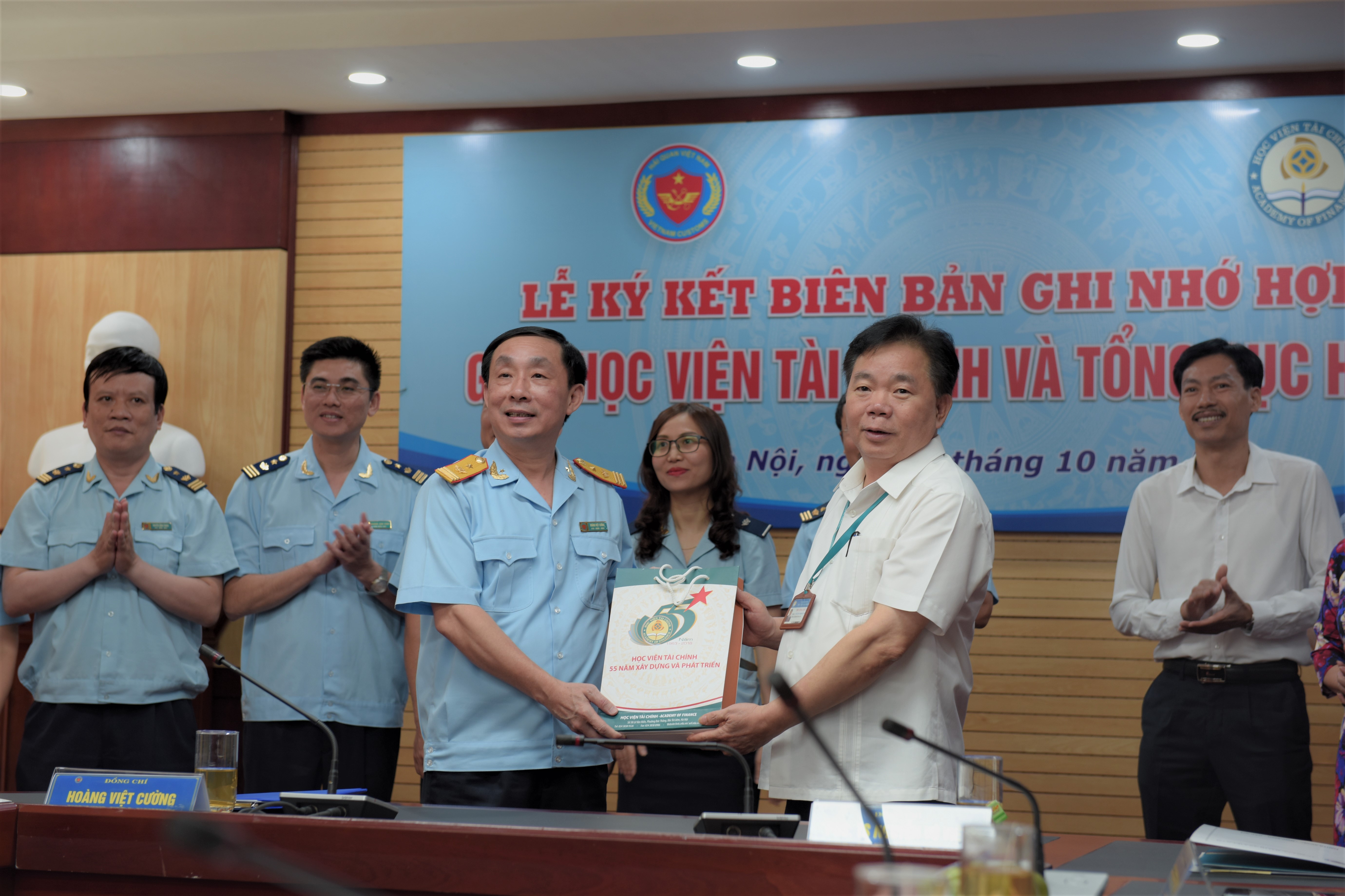 Về phía Tổng cục Hải quan có Phó Tổng cục trưởng Hoàng Việt Cường, Học viện Tài chính có PGS.TS Nguyễn Trọng Cơ, Bí thư Đảng ủy, Giám đốc học viện Tài chính làm trưởng đoàn, cùng đại diện lãnh đạo hai đơn vị.