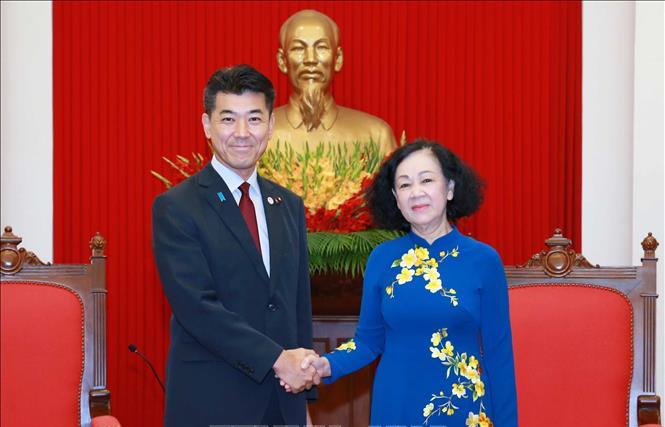 | Đồng chí Trương Thị Mai tiếp Đoàn Đại biểu Đảng Dân chủ Lập hiến Nhật Bản do ông Izumi Kenta - Chủ tịch Đảng dẫn đầu sang thăm và làm việc tại Việt Nam. |