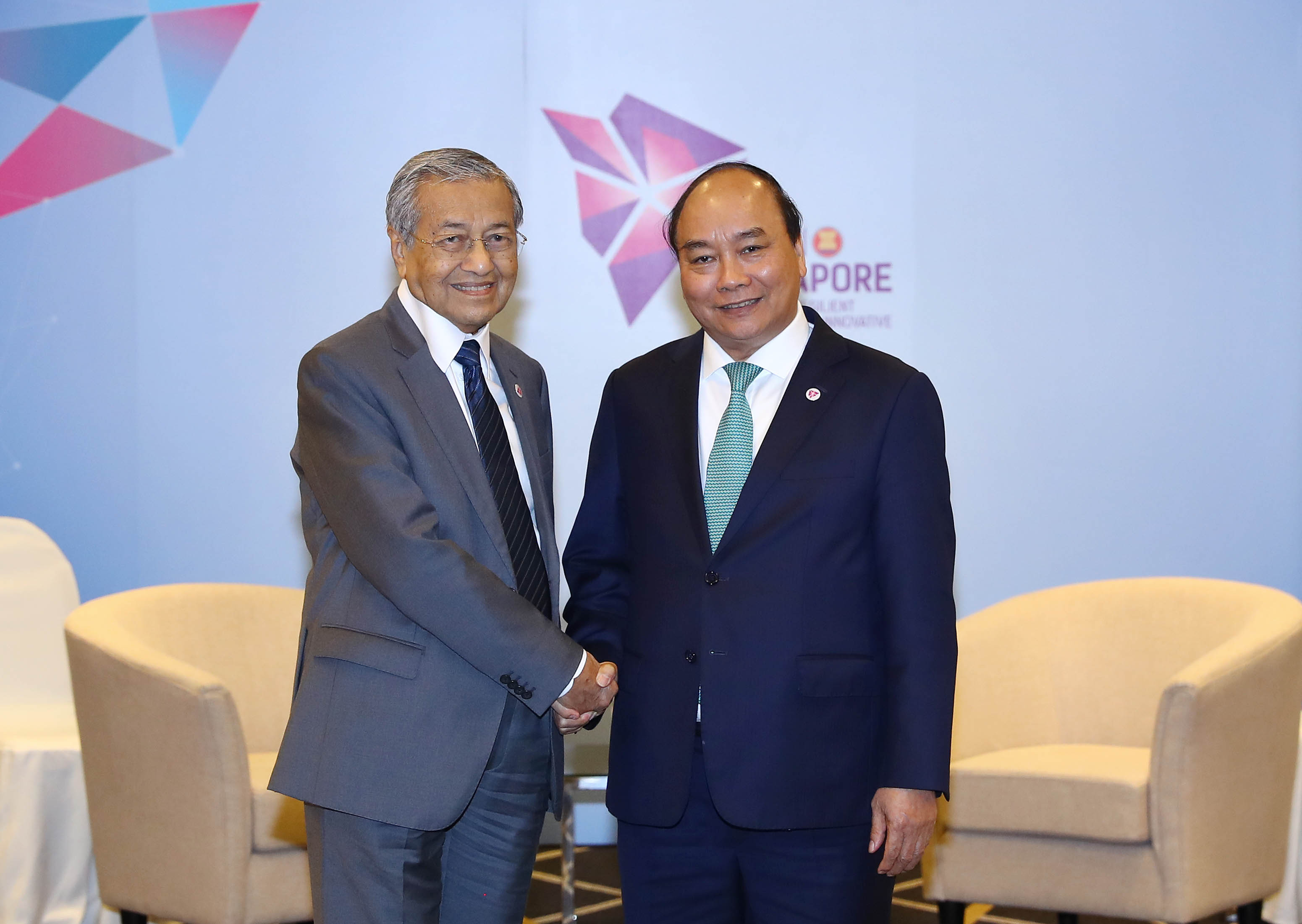 Tại buổi hội kiến Thủ tướng Ma-lay-xi-a, Thủ tướng Nguyễn Xuân Phúc đề nghị hai nước cùng phấn đấu đạt thương mại hai chiều đạt 15 tỷ USD vào năm 2020; Ma-lay-xi-a hỗ trợ doanh nghiệp Việt Nam cung ứng thực phẩm Ha-la, tăng cường hợp tác năng lượng, hợp tác biển; cảm ơn Ma-lay-xi-a đối xử nhân đạo với ngư dân Việt Nam. Thủ tướng cũng đề nghị hai bên tiếp tục phối hợp lập trường, củng cố đoàn kết, vai trò của ASEAN trong vấn đề Biển Đông theo những nguyên tắc và thông lệ đã được ASEAN nhất trí; thúc đẩy thực hiện DOC, xây dựng COC hiệu quả và ràng buộc pháp lý.