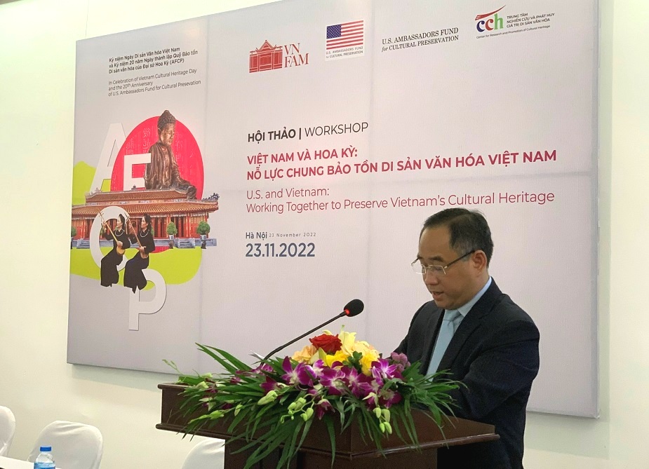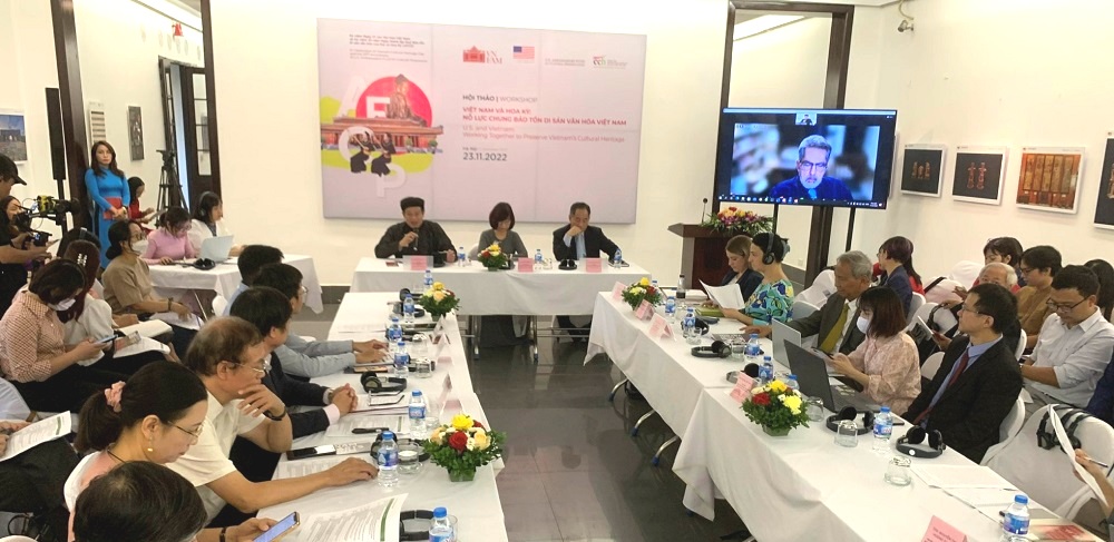 Nhân Ngày Di sản Văn hóa Việt Nam (23/11) và kỷ niệm 20 năm Ngày thành lập Quỹ Bảo tồn Di sản văn hóa của Đại sứ Hoa Kỳ (Quỹ AFCP), sáng 23/11, tại Hà Nội, Đại sứ quán Hoa Kỳ tại Việt Nam, Bảo tàng Mỹ thuật Việt Nam và Trung tâm Nghiên cứu và Phát huy giá trị Di sản văn hóa (Hội Di sản Văn hóa Việt Nam) tổ chức Hội thảo “Việt Nam và Hoa Kỳ: Nỗ lực chung Bảo tồn Di sản văn hóa Việt Nam”.