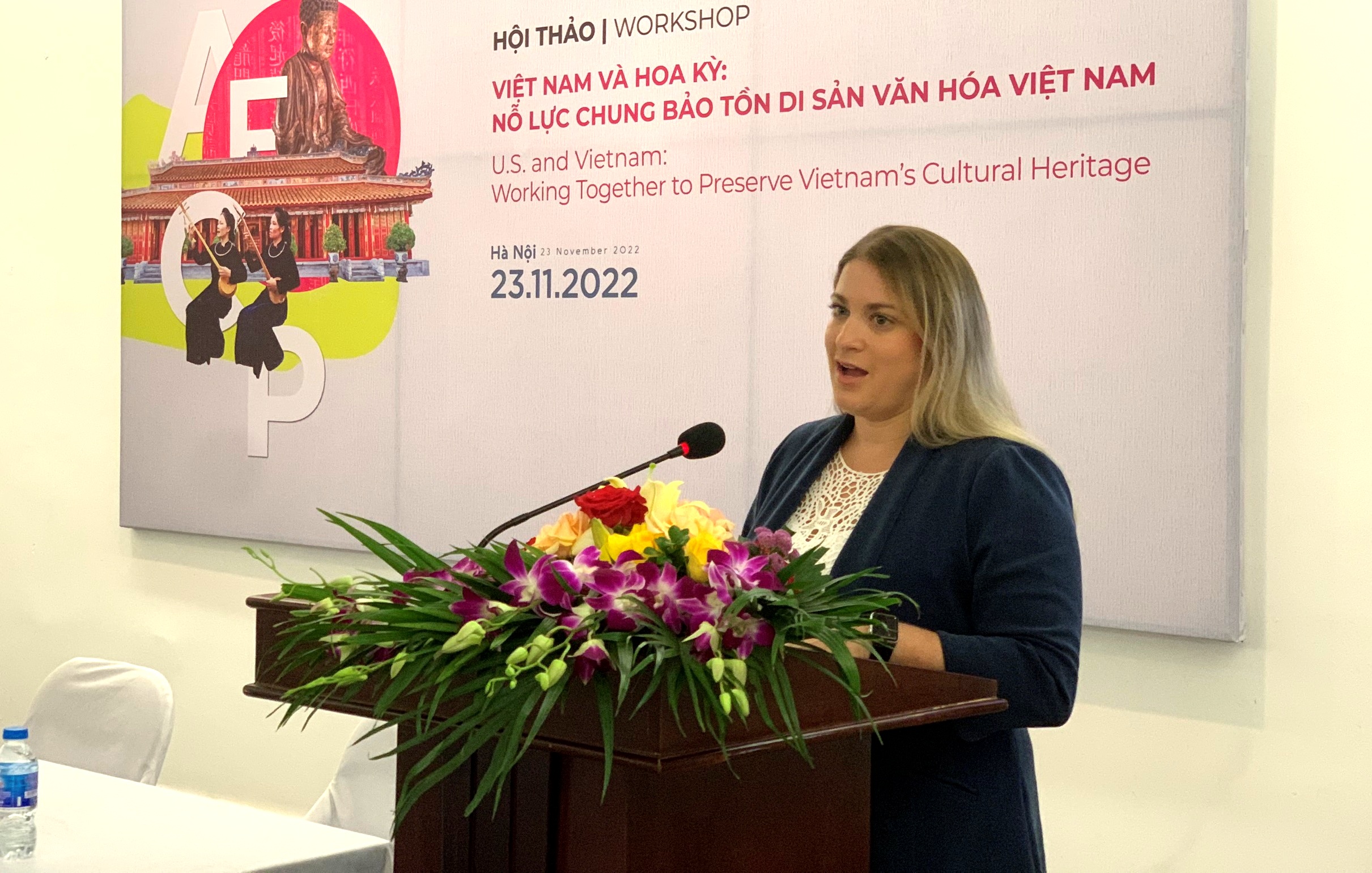 Có mặt tại hội thảo, bà Kate Bartlett - Tùy viên Văn hóa, Đại sứ quán Hoa Kỳ tại Việt Nam cho biết: Năm 2001, Bộ Ngoại giao Hoa Kỳ đã khởi động một chương trình mới nhằm tạo điều kiện cho các Đại sứ quán trên khắp thế giới hỗ trợ các quốc gia và cộng đồng bảo tồn di sản văn hóa thông qua các dự án đặc biệt. Chương trình này nhanh chóng trở thành cầu nối hợp tác mới quan trọng giữa Hoa Kỳ và 133 quốc gia trên thế giới, thể hiện sự tôn trọng sâu sắc của Hoa Kỳ đối với các nền văn hóa đa dạng và lịch sử phong phú cần được gìn giữ cho các thế hệ tương lai.