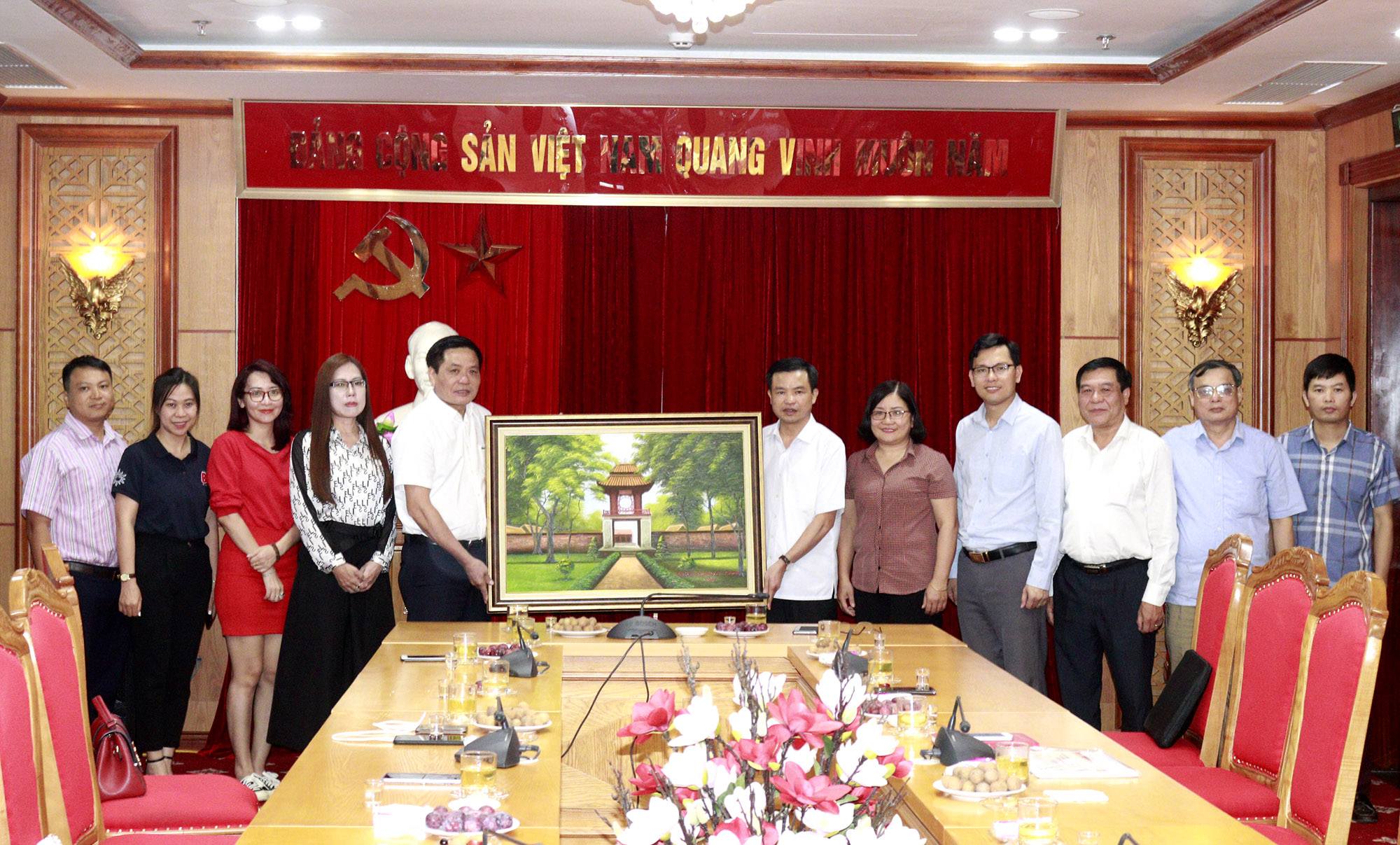 Ban Tuyên giáo Tỉnh uỷ Cao Bằng tiếp và làm việc với Đoàn có các đồng chí: Bế Thanh Tịnh, Ủy viên Ban Thường vụ Tỉnh ủy, Trưởng Ban Tuyên giáo Tỉnh ủy; Bế Lan Phương, Phó Trưởng ban Thường trực; Triệu Văn Thực, Phó Trưởng ban, cùng các đồng chí lãnh đạo các phòng, ban chuyên môn của Ban Tuyên giáo Tỉnh uỷ Cao Bằng.