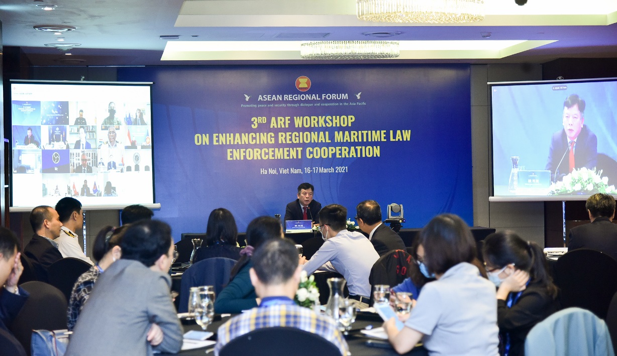 Vì mục tiêu này, các nước cần tiếp tục hợp tác với nhau, trong đó có hợp tác giữa các lực lượng thực thi pháp luật. Để góp phần triển khai Tuyên bố ARF về Hợp tác giữa các cơ quan thực thi pháp luật trên biển được các Bộ trưởng Ngoại giao thông qua năm 2016, Việt Nam cùng với Ốt-xtrây-lia và EU đã tổ chức loạt Hội thảo ARF về Hợp tác thực thi pháp luật trên biển, và đã đạt được nhiều kết quả tích cực. Nhằm phát huy hơn nữa những kết quả các hội thảo trước, Trưởng đoàn Việt Nam đề nghị Hội thảo lần này tập trung trao đổi những phát triển gần đây liên quan tới thực thi pháp luật trên biển, các kinh nghiệm, thực tiễn tốt về hợp tác song phương-đa phương, khả năng xây dựng quy tắc ứng xử, nguyên tắc hướng dẫn cho hoạt động của các lực lượng thực thi pháp luật trên biển, cũng như các thách thức, cơ hội cho hợp tác biển trong hoàn cảnh dịch bệnh như hiện nay.