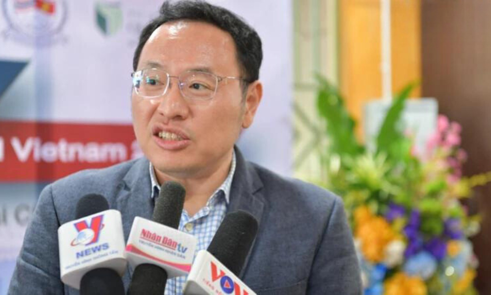 Ông Tharabodee Serng Adichaiwit, Phó Chủ tịch Phòng Thương mại Thái Lan tại Việt Nam (ThaiCham) trả lời phỏng vấn báo chí.