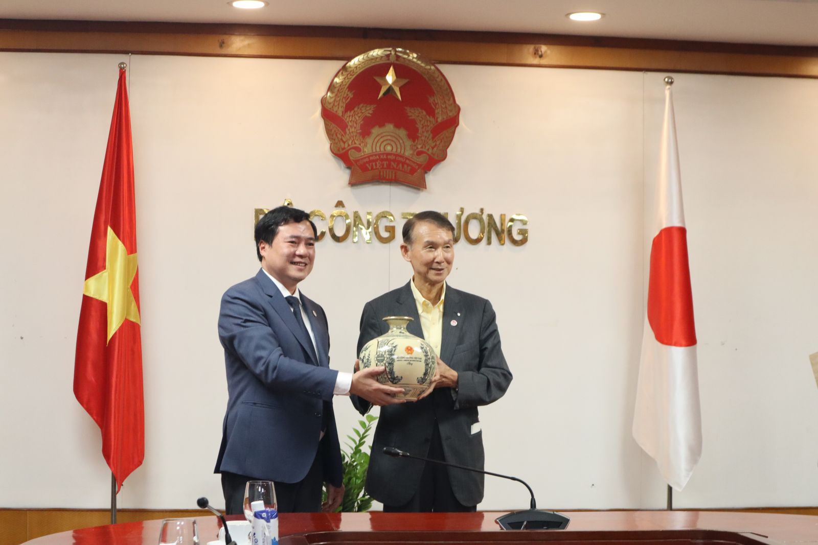 | Thứ trưởng Bộ Công Thương Nguyễn Sinh Nhật Tân và ông Kishimoto Shuhei, Thống đốc tỉnh Wakayama, Nhật Bản. |