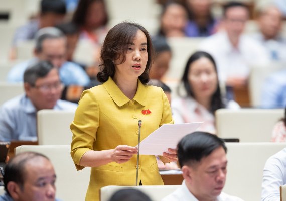 | Đại biểu Nguyễn Thị Kim Anh (Đoàn Bắc Ninh) phát biểu tại Hội trường. Ảnh: TH. |