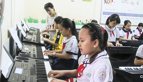 Học sinh tham gia lớp đàn Organ Keyboard. Ảnh: B.KIÊN