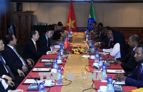 Chủ tịch nước Trần Đại Quang bày tỏ vui mừng lần đầu tiên đến thăm Ethiopia; cảm ơn sự đón tiếp nồng hậu của lãnh đạo và nhân dân Ethiopia. Chủ tịch nước đánh giá cao những thành tựu của Ethiopia trong việc duy trì ổn định chính trị, phát triển đất nước, giữ vững tốc độ tăng trưởng kinh tế ở mức cao hàng đầu của châu lục trong hơn 10 năm qua, trong đó có sự đóng góp không nhỏ của Nghị viện Ethiopia trong việc xây dựng môi trường đoàn kết, thống nhất đất nước, góp phần duy trì ổn định chính trị và phát triển kinh tế - xã hội, cải thiện đời sống nhân dân.