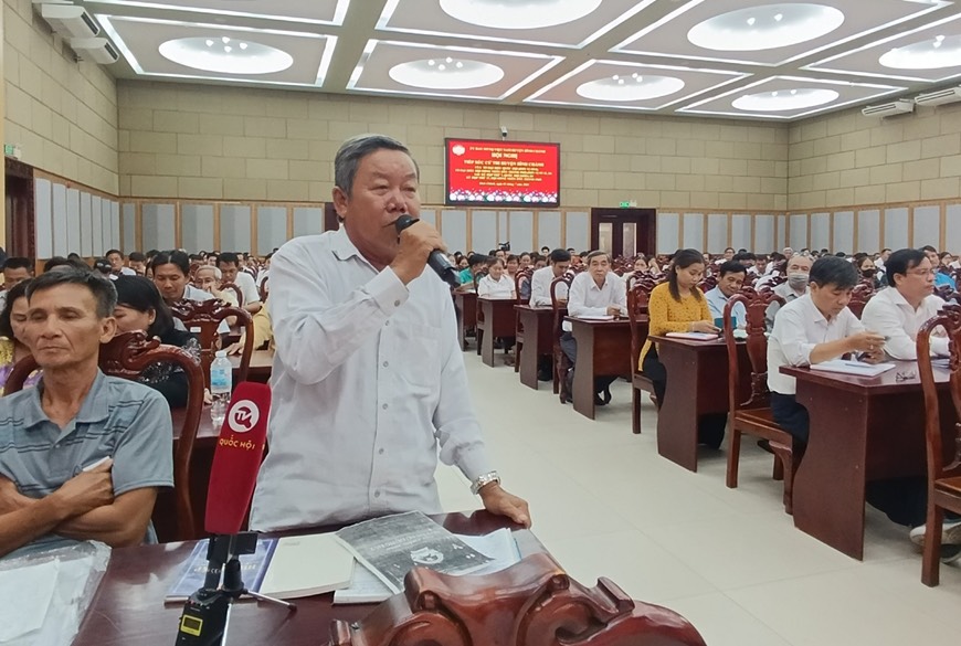 | Cử tri nêu ý kiến tại buổi tiếp xúc cử tri của các tổ Đại biểu Quốc hội và Hội đồng nhân dân TP Hồ Chí Minh. (Ảnh: QĐND) |
