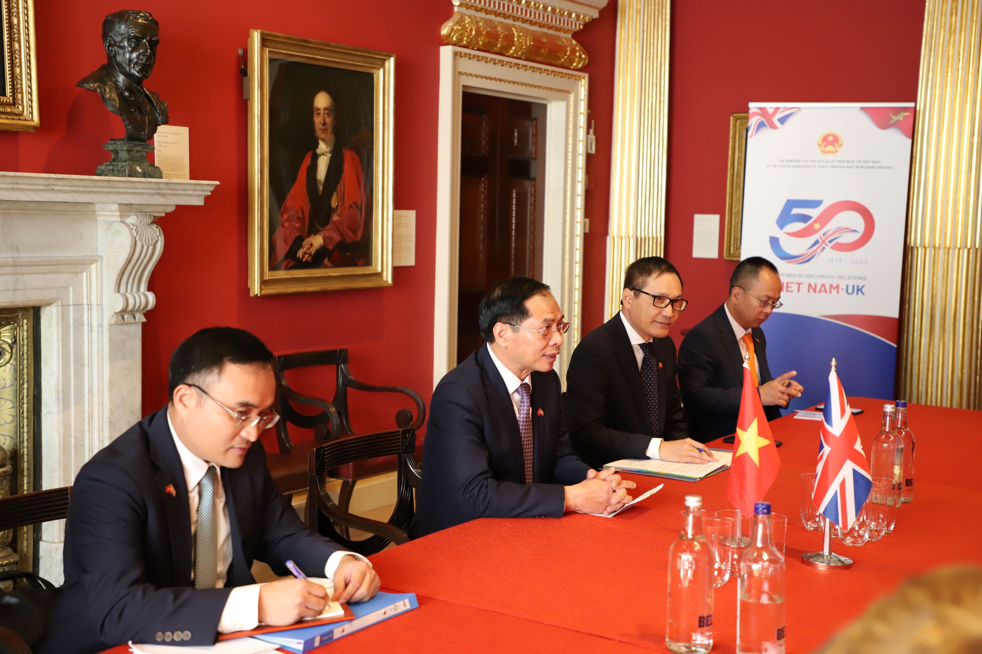 Ngày 05/5/2023, tại Thủ đô London, Vương quốc Anh, Bộ trưởng Ngoại giao Bùi Thanh Sơn đã có cuộc gặp làm việc với Ngoại trưởng Anh James Cleverly.