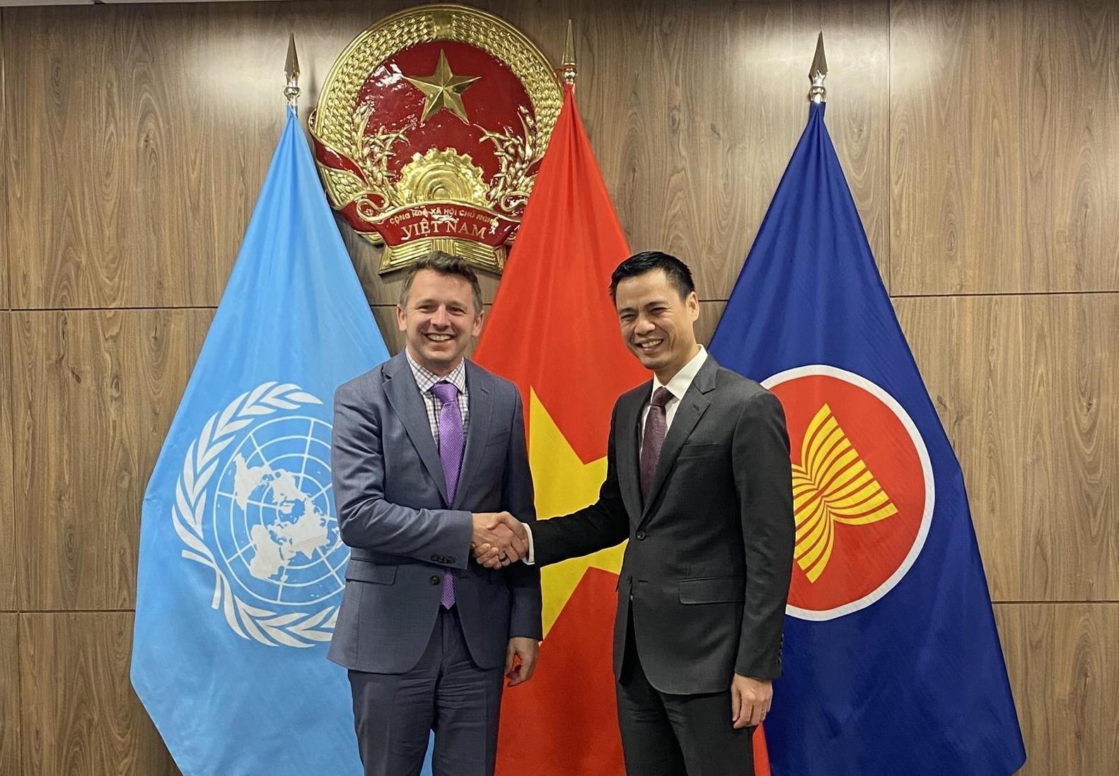 Ngày 22/2, tại trụ sở Phái đoàn thường trực Việt Nam tại Liên hợp quốc (LHQ) ở New York (Mỹ), Đại sứ, Trưởng Phái đoàn Đặng Hoàng Giang đã có cuộc làm việc với ông Francis Drouin, Chủ tịch Liên minh Nghị viện Pháp ngữ (APF) để trao đổi về hợp tác giữa APF với Việt Nam thời gian qua và phương hướng thúc đẩy APF tăng cường quan hệ hợp tác với LHQ.