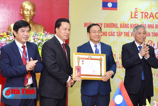 Nhân dịp này, đồng chí Kong Kẹo Xay Xống Kham, Bí thư – Tỉnh trưởng tỉnh Bôlykhămxay đã trao Huân chương Lao động hạng Nhất của nước CHDCND Lào tặng tỉnh Hà Tĩnh và Bộ đội Biên phòng tỉnh Hà Tĩnh; trao Huân chương Lao động hạng Nhì cho Sở Ngoại vụ; trao Huân chương Lao động hạng Ba cho Ban Tuyên giáo Tỉnh ủy và Trường Đại học Hà Tĩnh. Bên cạnh đó, lãnh đạo tỉnh Bôlykhămxay cũng đã trao Bằng khen cho các tập thể và cá nhân đã có thành tích xuất sắc góp phần gìn giữ, vun đắp mối quan hệ truyền thống hữu nghị đặc biệt hợp tác toàn diện Việt Nam – Lào./.