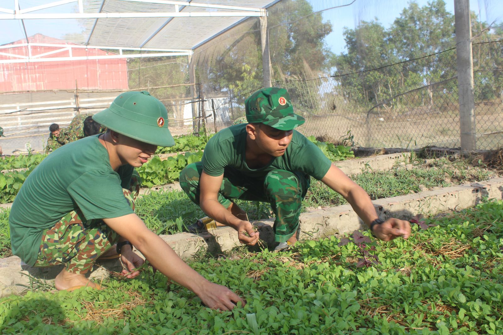 Chiến sĩ Huỳnh Minh Thanh cho biết: “Ở đây, các chiến sĩ chia nhiệm vụ tăng gia sản xuất cho từng người như người trồng rau, người nuôi cá, người chăn nuôi bò,…Cán bộ, chiến sĩ luôn xác định phải cùng ra sức tăng gia sản xuất để cải thiện bữa ăn, bảo đảm quân số khỏe để tiếp tục hoàn thành tốt nhiệm vụ chính trị được giao”.