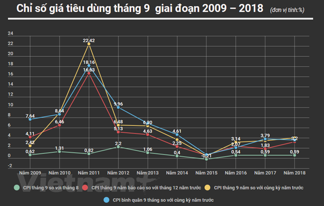 Theo bà Đỗ Thị Ngọc, Vụ phó Vụ Thống kê (Tổng cục Thống kê), đây là một trong những nguyên nhân chính làm cho CPI tháng Chín tăng đến 0,59% so với tháng Tám và tăng 3,98% so cùng kỳ, tăng 3,2% so với tháng 12.