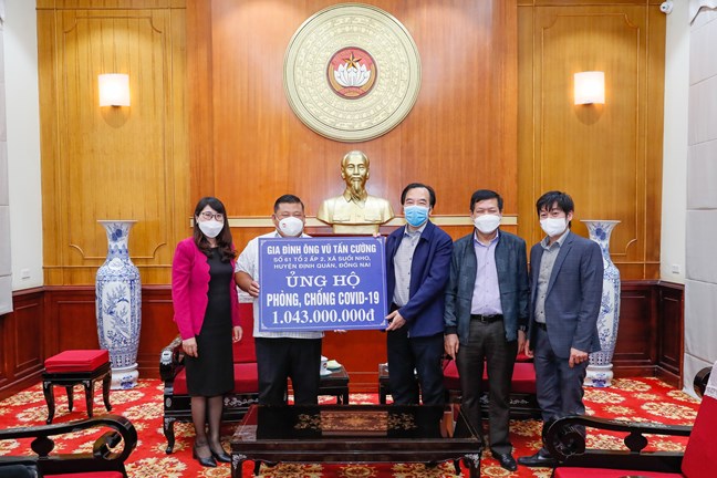 Thay mặt Ban Thường trực UBTƯ MTTQ Việt Nam, Phó Chủ tịch Ngô Sách Thực trân trọng cảm ơn tấm lòng hảo tâm của gia đình ông Vũ Tấn Cường đã đồng hành, ủng hộ nguồn lực để cùng với Đảng, Nhà nước đẩy lùi sự lây lan của dịch bệnh.