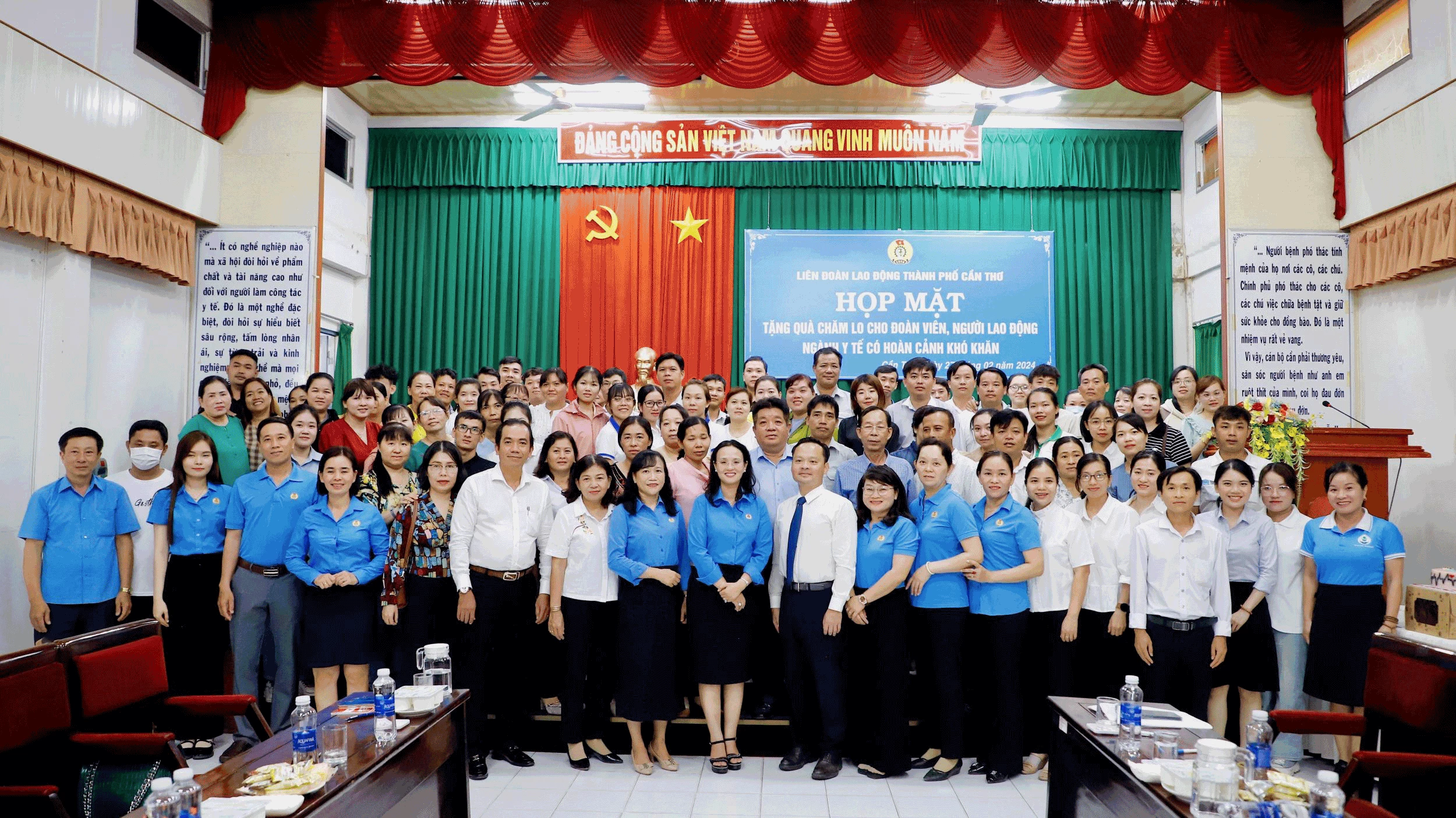 (CT) - Nhân kỷ niệm 69 năm Ngày Thầy thuốc Việt Nam (27/2/1955-27/2/2024), chiều 27-2, LÐLÐ TP Cần Thơ tổ chức họp mặt, tặng quà đoàn viên, người lao động (ÐV, NLÐ) ngành y tế có hoàn cảnh khó khăn. Bà Lê Thị Sương Mai, Chủ tịch LÐLÐ TP Cần Thơ; ông Hoàng Quốc Cường, Giám đốc Sở Y tế thành phố đến dự.