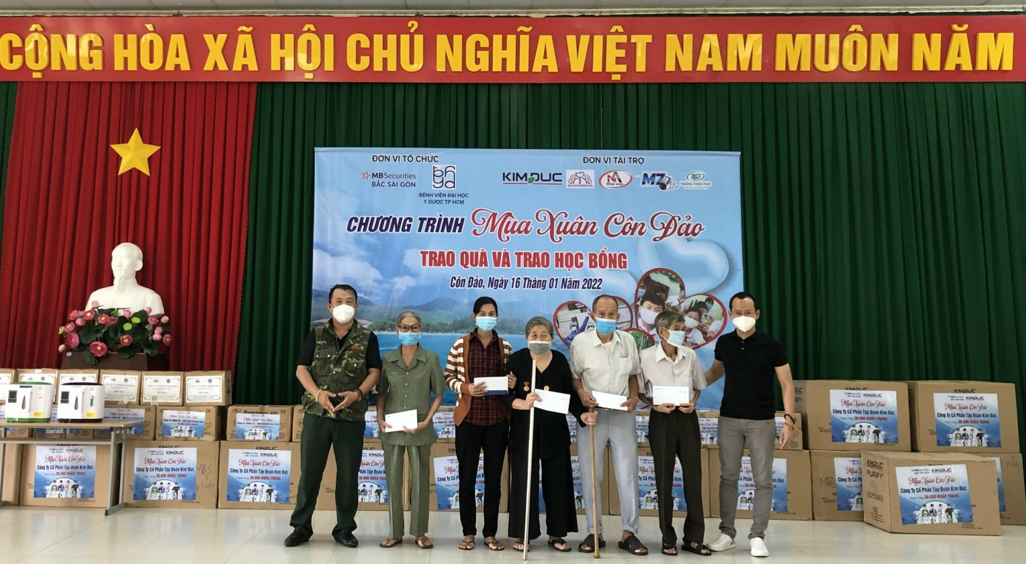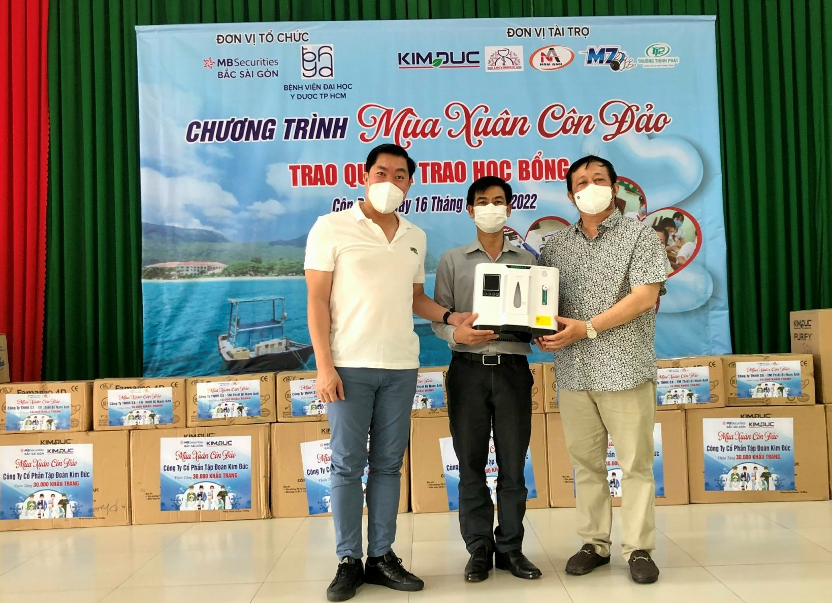 Tại đây, Đoàn đã trao tặng cho ngành y tế huyện Côn Đảo 10 máy tạo Oxy, 45 ngàn đồ bảo hộ, khẩu trang chống khuẩn N95; trao tặng 200 phần quà Tết cho các cựu tù Côn đảo, gia đình chính sách, lực lượng vũ trang tham gia tuyến đầu chống dịch huyện Côn Đảo; 70 suất học bổng cho các em học sinh là con em các gia đình ngư dân có hoàn cảnh khó khăn vượt khó học giỏi và cho con của các cán bộ, chiến sĩ lực lượng vũ trang đóng quân trên đảo với mỗi suất học bổng trị giá 1 triệu đồng.