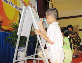 | Trẻ em chịu ảnh hưởng bởi HIV tham gia thi vẽ tranh trong ngày vui Tết Trung thu do Trung tâm Phòng, chống HIV/AIDS tổ chức. |