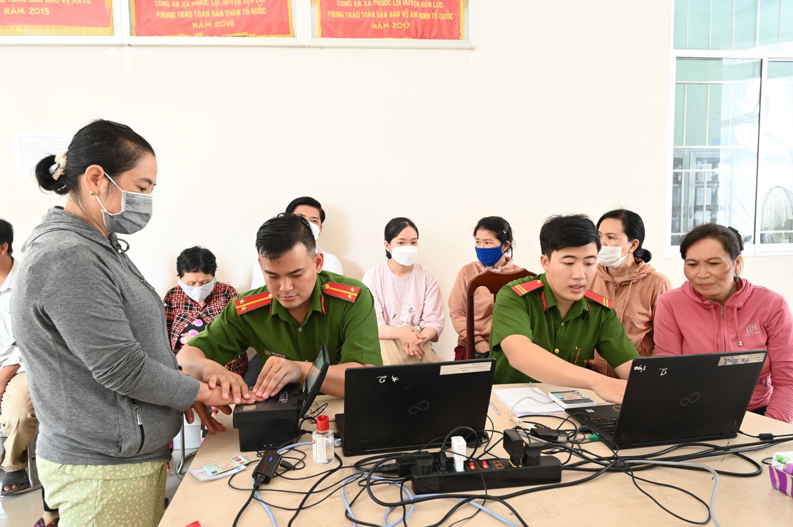 Thượng tá Huỳnh Văn Tét - Phó Trưởng Công an huyện Bến Lức, cho biết: Công an huyện tổ chức 2 tổ công tác để thực hiện việc cấp CCCD và ĐDĐT cho người dân. Tổ thứ nhất làm việc tại trụ sở Công an huyện phục vụ người dân khu vực thị trấn Bến Lức và các xã lân cận. Tổ thứ hai sẽ cấp lưu động tại các xã và hiện tại, tổ lưu động này làm việc tại trụ sở Công an xã Phước Lợi, sau đó sẽ di chuyển đến các xã còn lại.