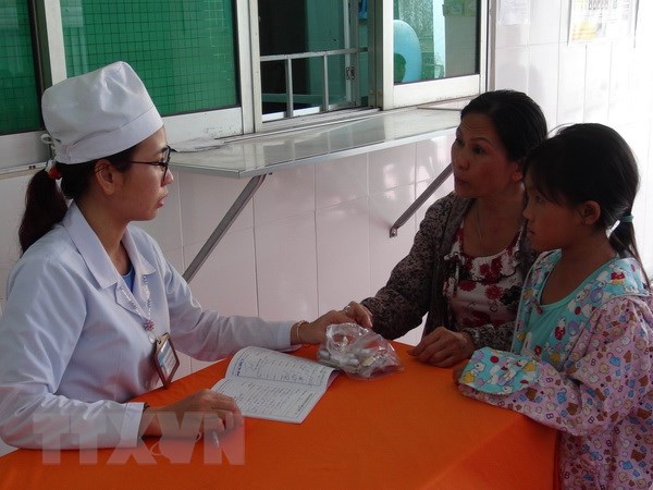 Bác sỹ tư vấn, hướng dẫn bệnh nhân sử dụng thuốc. (Ảnh: Huỳnh Phúc Hậu/TTXVN)