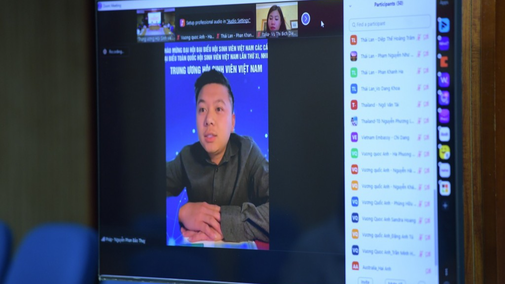 | Hội nghị tổ chức theo hình thức trực tuyến với 60 điểm cầu là các tổ chức Hội Sinh viên Việt Nam ở ngoài nước |