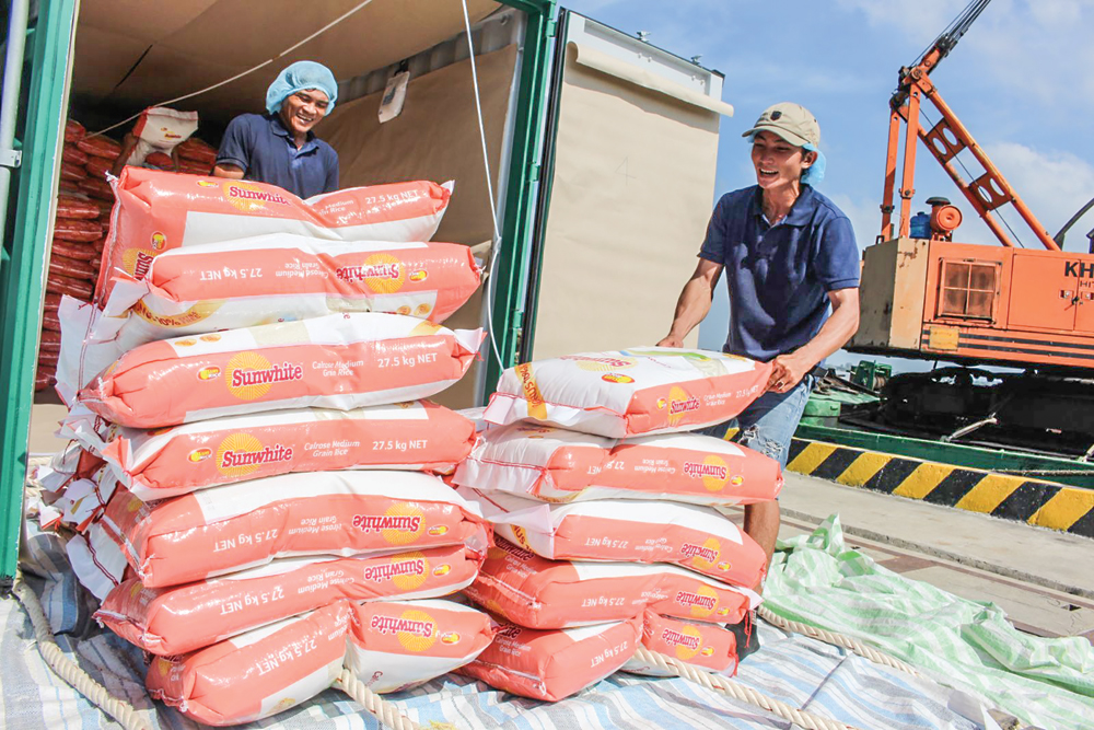 Gạo xuất khẩu được xếp dỡ và đóng vào container tại Cảng Tân Cảng - Cái Cui.