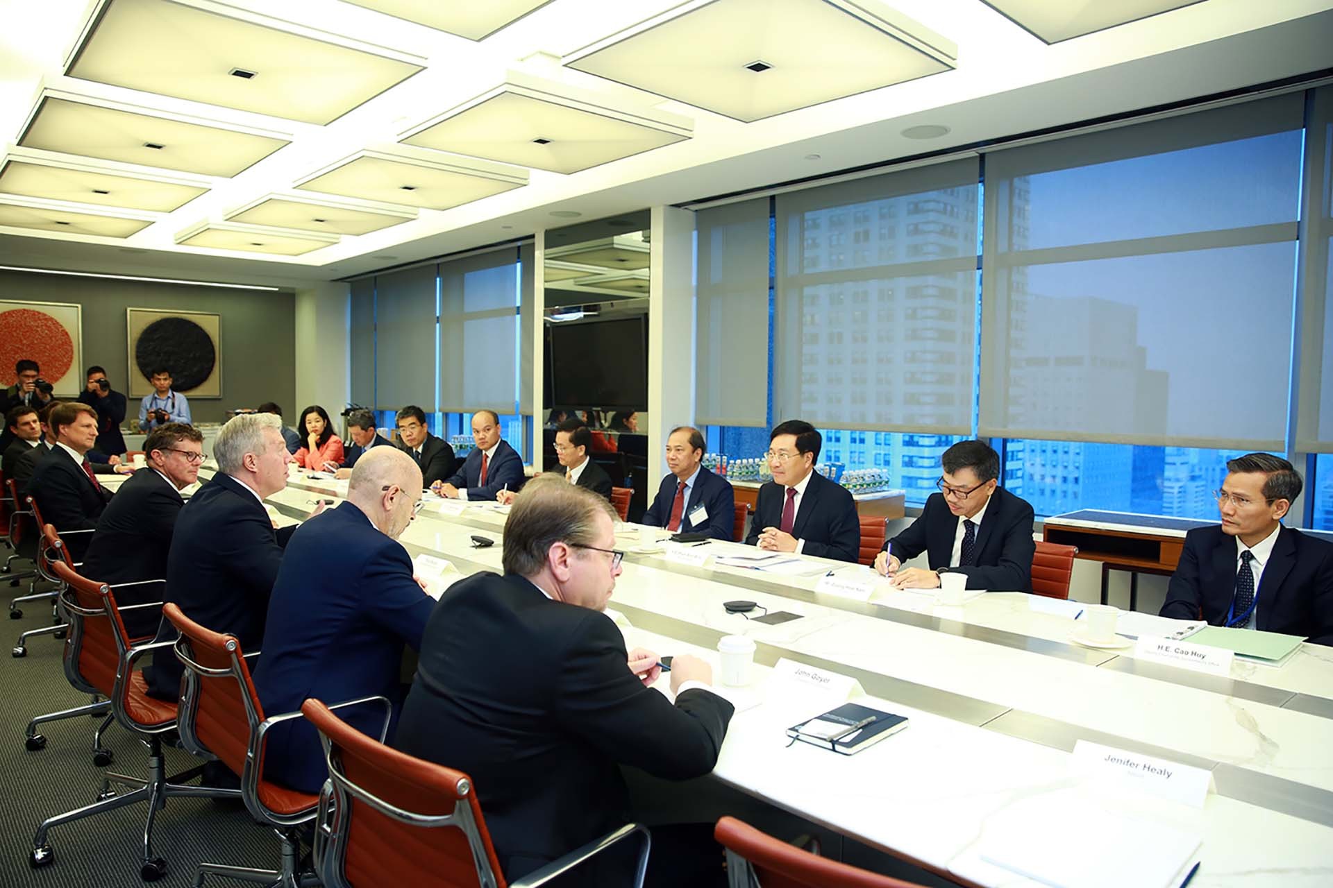 Ngày 22/9/2022, trong khuôn khổ Đại hội đồng Liên hợp quốc lần thứ 77 tại thành phố New York, Phó Thủ tướng Thường trực Chính phủ Phạm Bình Minh đã tham dự Tọa đàm với Phòng Thương mại Hoa Kỳ (USCC), Hội đồng Kinh doanh về sự hiểu biết quốc tế (BCIU), Hội đồng kinh doanh Hoa Kỳ - ASEAN (USABC) và các doanh nghiệp Hoa Kỳ hoạt động trong nhiều lĩnh vực.
