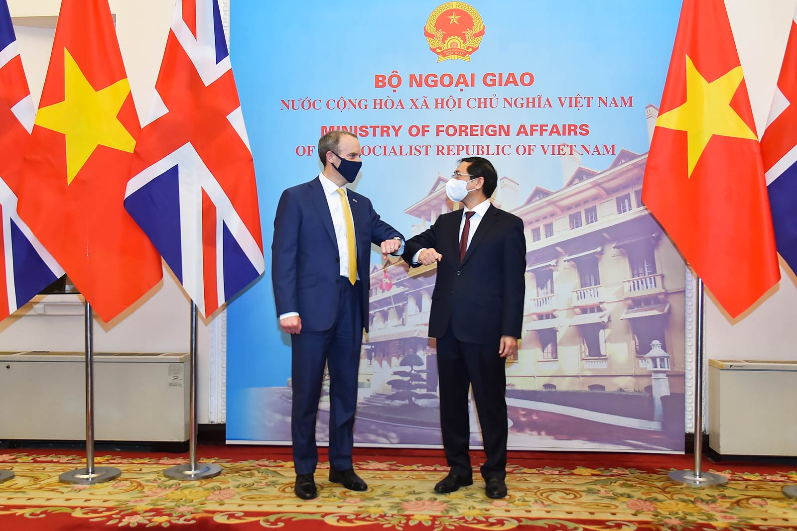Nhận lời mời của Bộ trưởng Ngoại giao Bùi Thanh Sơn, Bộ trưởng thứ nhất, Bộ trưởng Ngoại giao và Phát triển Anh Đô-mi-ních Ráp (Dominic Raab) thăm chính thức Việt Nam từ ngày 21-22/6/2021. Ngày 22/6, tại Nhà khách Chính phủ Bộ trưởng Ngoại giao Bùi Thanh Sơn và Bộ trưởng thứ nhất, Bộ trưởng Ngoại giao và Phát triển Anh Dominic Raab đã tiến hành hội đàm.
