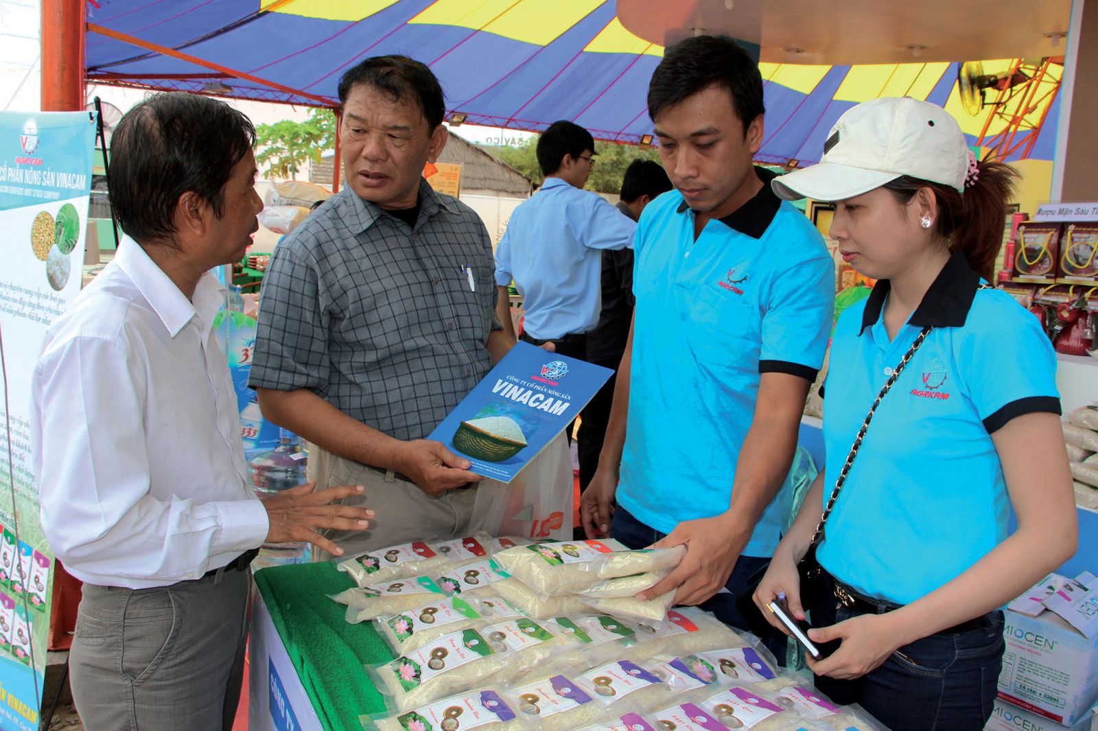 Từ những chính sách hỗ trợ, nhiều doanh nghiệp tại TP Cần Thơ không ngừng nâng cao năng lực cạnh tranh trong hội nhập kinh tế quốc tế. Trong ảnh: Công ty cổ phần nông sản Vinacam quảng bá sản phẩm tại hội chợ. Ảnh: KHÁNH NAM