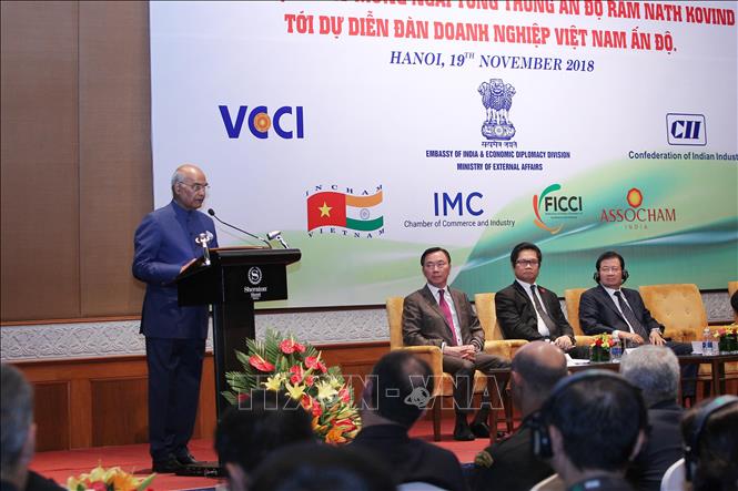 Trong khuôn khổ chuyến thăm cấp Nhà nước tới Việt Nam của Tổng thống Ấn Độ Ram Nath Kovind (Ram Nát Cô-vin) và Phu nhân từ ngày 18-20/11/2018, theo lời mời của Chủ tịch nước Nguyễn Phú Trọng, chiều 19/11, tại Hà Nội, Phòng Thương mại và Công nghiệp Việt Nam (VCCI), Đại sứ quán Ấn Độ tại Việt Nam, Liên đoàn Công nghiệp Ấn Độ phối hợp cùng các cơ quan liên quan của hai nước tổ chức Diễn đàn doanh nghiệp Việt Nam - Ấn Độ .