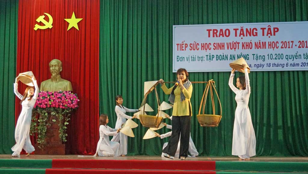 Tập đoàn An Nông trao 100 suất học bổng cho con em nông dân trên địa bàn huyện Đức Hòa, tỉnh Long An, mỗi suất trị giá 200 ngàn đồng tiền mặt và 20 quyển tập.