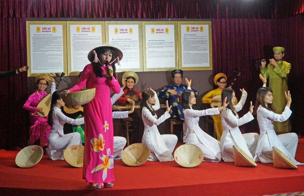 Sân khấu Khu trưng bày tượng sáp Việt (lầu 2, Nhà hát Hòa Bình, 240, đường 3-2, phường 12, quận 10, TP.HCM) - nơi nhiều tháng qua trở thành điểm hẹn sinh hoạt văn hóa - nghệ thuật của nhiều khán giả yêu thích sân khấu, ca nhạc, điện ảnh.