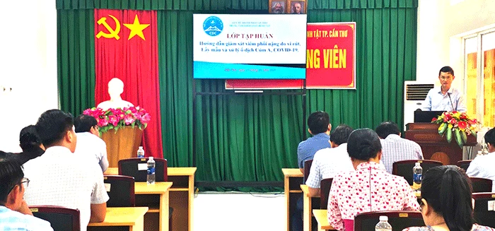(CT) - Chiều 22-5, Trung tâm Kiểm soát bệnh tật (CDC) TP Cần Thơ triển khai kế hoạch tập huấn hướng dẫn giám sát viêm phổi nặng do virus, lấy mẫu và xử lý ổ dịch cúm A, COVID-19.