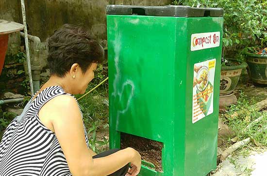 Sử dụng thùng rác compost giúp người dân giảm chi phí xử lý, thu gom rác thải, hạn chế ô nhiễm môi trường nông thôn. Ảnh: Internet