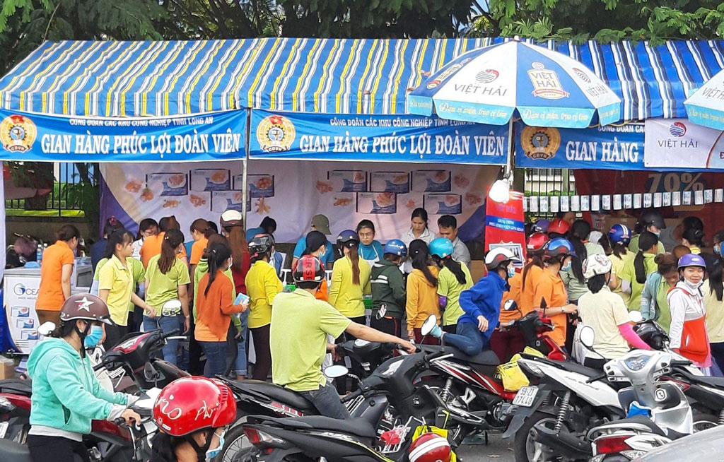 Chị Đinh Thị Kim Ngọc - CN Công ty TNHH Simone Việt Nam (Khu công nghiệp Long Hậu, huyện Cần Giuộc), nói: “Một trong những hoạt động góp phần chăm lo CNLĐ là chương trình bán hàng “Phúc lợi đoàn viên”. Giá cả các mặt hàng ở đây được giảm hơn 20% so với giá bán ở các tiệm tạp hóa gần nơi ở trọ. Nhờ có các điểm bán hàng giá ưu đãi, chúng tôi tiết kiệm được một khoản tiền để trang trải những công việc khác trong cuộc sống”.