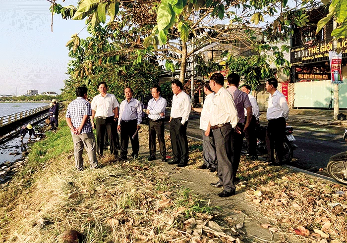 Ðoàn giám sát của Ban Ðô thị tái giám sát tại dự án Hồ Búng Xáng tại phường An Khánh, quận Ninh Kiều.