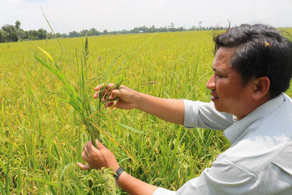 Ông Huỳnh Văn Đồng, ngụ ấp Bắc Chan 2, xã Tuyên Thạnh, thị xã Kiến Tường, chia sẻ: “Vụ Đông Xuân 2017-2018, gia đình tôi gieo sạ 2,5ha lúa nhưng bị nhiễm sâu năn nặng. Tôi cố gắng chăm sóc để cứu lúa, hy vọng bù được một phần chi phí bỏ ra”.