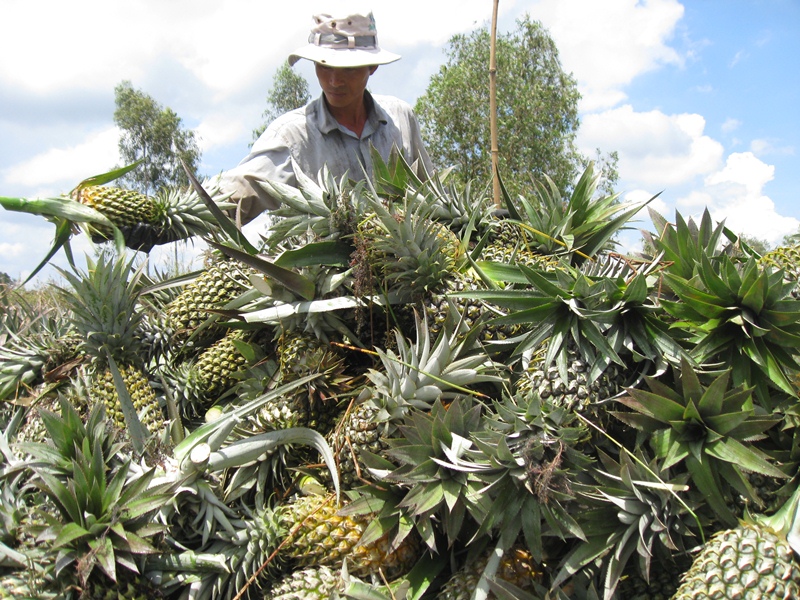 | Nông dân tỉnh Tiền Giang chuyển đổi từ trồng lúa kém hiệu quả sang trồng dứa xuất khẩu. (Ảnh: K.V) |