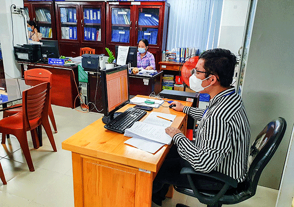 Cán bộ Phòng Đào tạo Trường Cao đẳng Y tế Cần Thơ đang hoàn tất hồ sơ tuyển sinh, xác nhận nhập học... của thí sinh.
