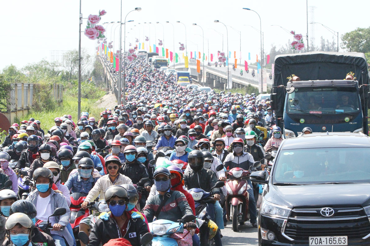 Kẹt xe ở cầu Bến Lức vào thời điểm tết 2019